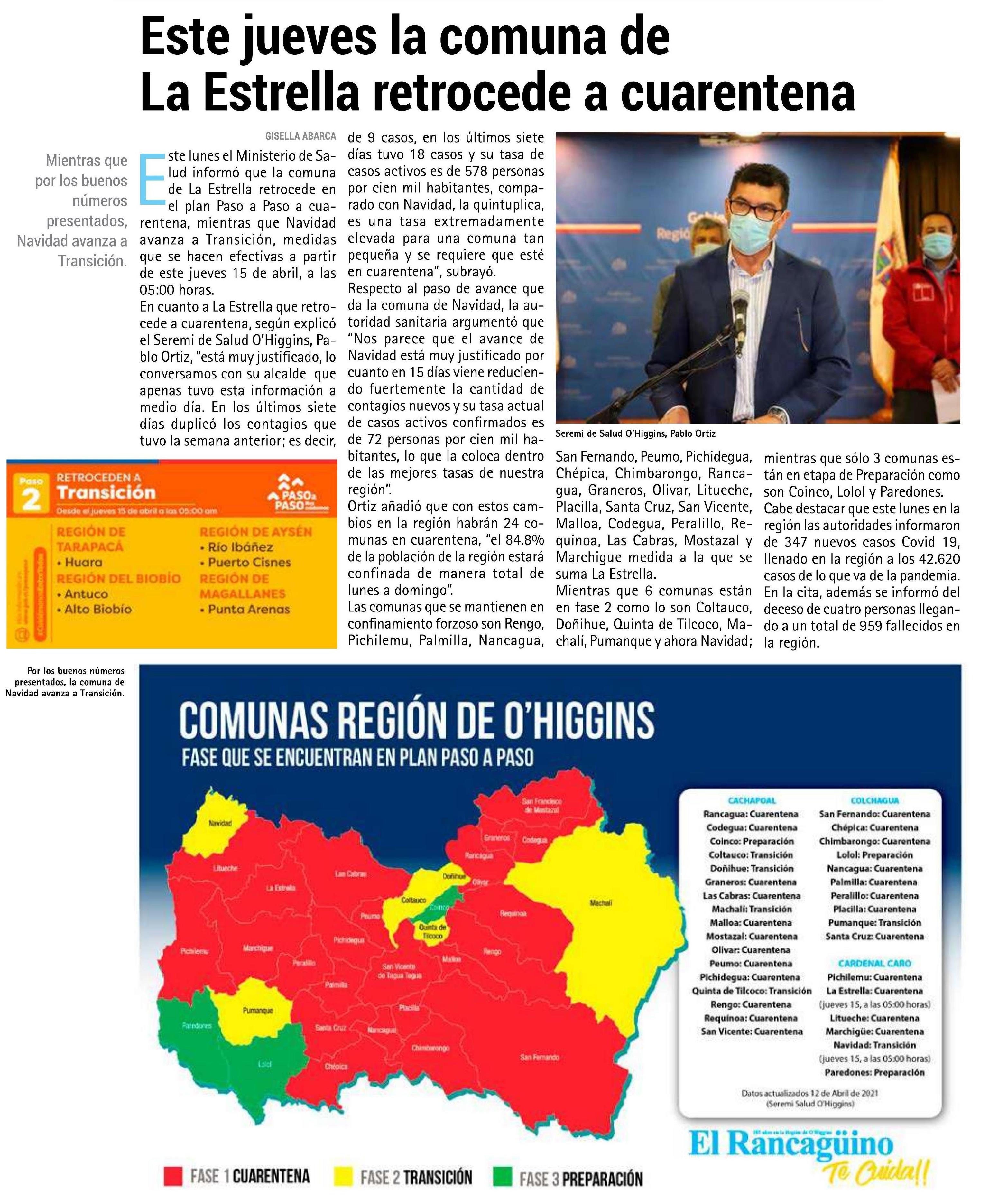 Comunas En Cuarentena Sexta Region / Alcalde Gonzalo Duran Declara Cuarentena Preventiva En Todo El Territorio De La Comuna Municipalidad De Independencia / La región superó los 40.000 contagiados con el virus.. 10.415 son los casos totales de covid 19 en la región de o´higgins, hoy se registraron 89 nuevos casos confirmados. Retroceden 15 comunas, 5 a cuarentena y 13 avanzan: Recuerde que desde el lunes 5 de abril, el horario del toque de queda para todo el país parte a las 21:00 horas y finaliza a las 05:00 horas. La subsecretaria de prevención del delito, katherine martorell, explicó que las personas si estamos en una comuna en cuarentena o en transición, y por lo tanto, se debiese tener un permiso para salir, para ir a votar sólo se necesitará. Revisa en el buscador en qué fase del plan paso a paso se encuentra tu comuna en el marco de las medidas implementadas por el gobierno para combatir la pandemia del coronavirus.
