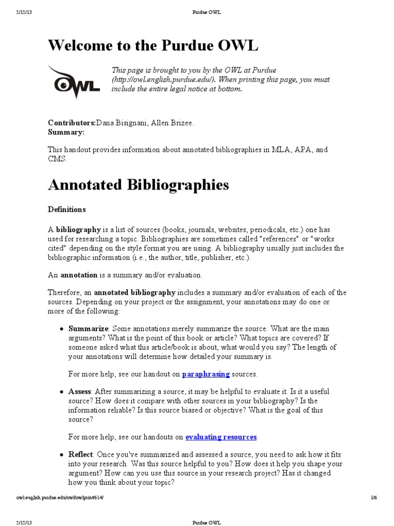 An annotation is a summary and/or evaluation. The location of the publisher (i.e., city, country/state code) is no longer required.; A bibliography usually just includes the bibliographic information (i.e., the author, title, publisher, etc.). As a college undergraduate, this is the most likely citation style you'll run into. Up to 20 authors cited: The information in this guide is taken from the publication manual, 6 edition, but is not exhaustive; The equivalent resource for the older apa 6 style can be found here. New york city, fiscal year 1996 (blmi report, no. Learn more about works cited pages on purdue owl. Students, members of the community, and users worldwide will find information to assist with many writing projects. The online writing lab (owl) at purdue university houses writing resources and instructional material, and we provide these as a free service of the writing lab at purdue. This page reflects the latest version of the apa publication manual (i.e., apa 7), which released in october 2019. The equivalent resource for the older apa 6 style can be found here.